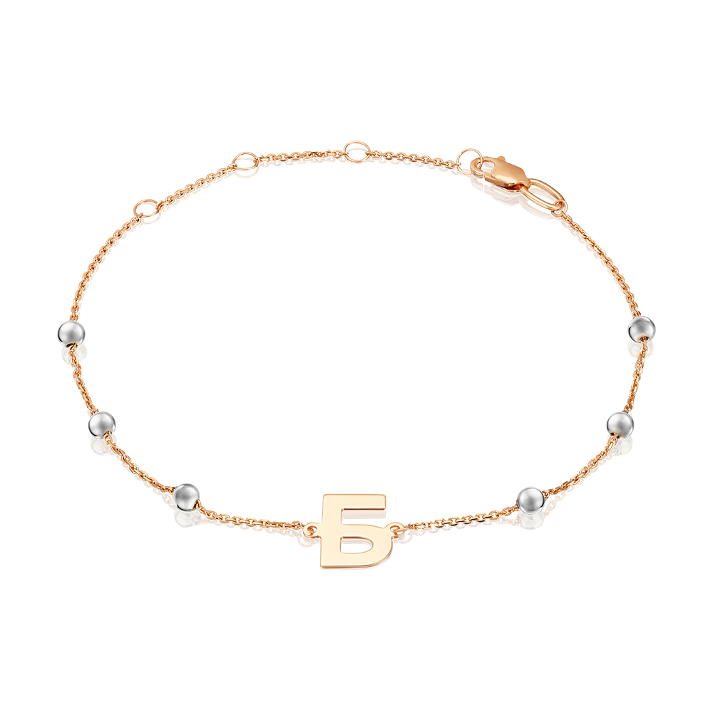 Браслет «Буква Б» из комбинированного золота