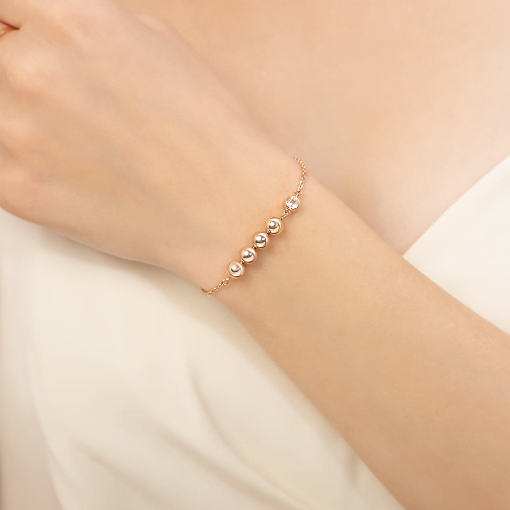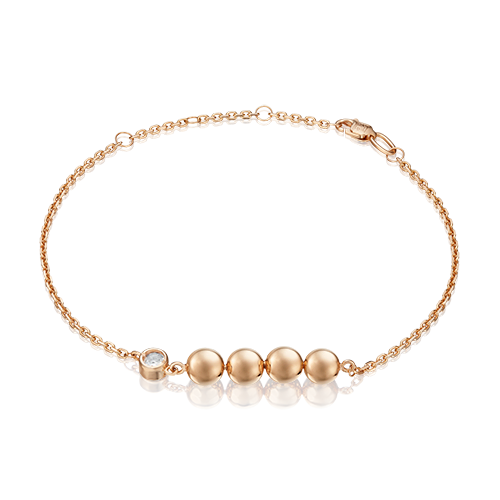 Лаконичный браслет на цепочке из красного золота с white-топазом из коллекции PLATINA LINE от ювелирного бренда PLATINA. Длина цепочки регулируется. Дизайн украшения в стиле геометрия и минимализм. Декоративный элемент выполнен с силуэтом дорожки из шаров с глянцевой поверхностью металла. Изделие инкрустировано натуральным white-топазом, закрепка которого выполнена вручную. Браслет подойдёт как к повседневному и деловому гардеробу, так и для коктейльных, праздничных или неформальных мероприятий.