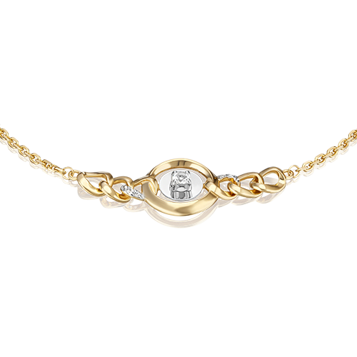 Браслет из лимонного (желтого) и белого золота 585 пробы на цепочке с white-топазами из коллекции PLATINA LINE от ювелирного бренда PLATINA. Длина цепочки регулируется. Дизайн украшения в стиле геометрия и минимализм. Декоративная часть выполнена с силуэтом цепи с укрупнённым звеном по центру. Украшение инкрустировано натуральными white-топазами, закрепка которых выполнена вручную. Браслет подойдёт к деловому и повседневному гардеробу, а также для коктейльных и вечерних мероприятий.
