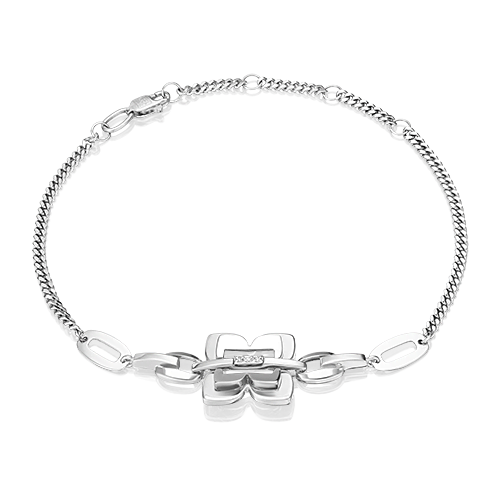 Браслет из белого золота 585 пробы с бриллиантами из коллекции PLATINA BRILLIANCE от ювелирного бренда PLATINA. Размер браслет регулируется за счёт дополнительных звеньев на цепочке. Дизайн украшения в стиле современная классика и геометрия с элементами флористики – центральный декоративный элемент выполнен в силуэтом объёмного фантазийного цветка. Украшение инкрустировано натуральными бриллиантами, закрепка которых выполнена вручную. Браслет подойдёт для коктейльных и вечерних мероприятий, а также к деловому и повседневному гардеробу.