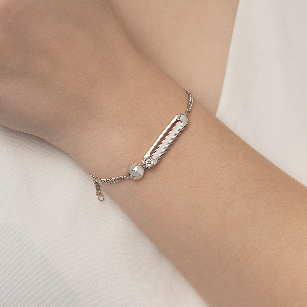 Стильный браслет из белого золота 585 пробы с white-топазом из коллекции PLATINA VIEW от ювелирного бренда PLATINA. Дизайн украшения лаконичный, в стиле геометрия. Многогранник с алмазными гранями имитирует огранку камней. Браслет инкрустирован натуральным white-топазом, закрепка которого выполнена вручную. Украшение подойдёт для коктейльных мероприятий, а также к деловому и повседневному гардеробу.