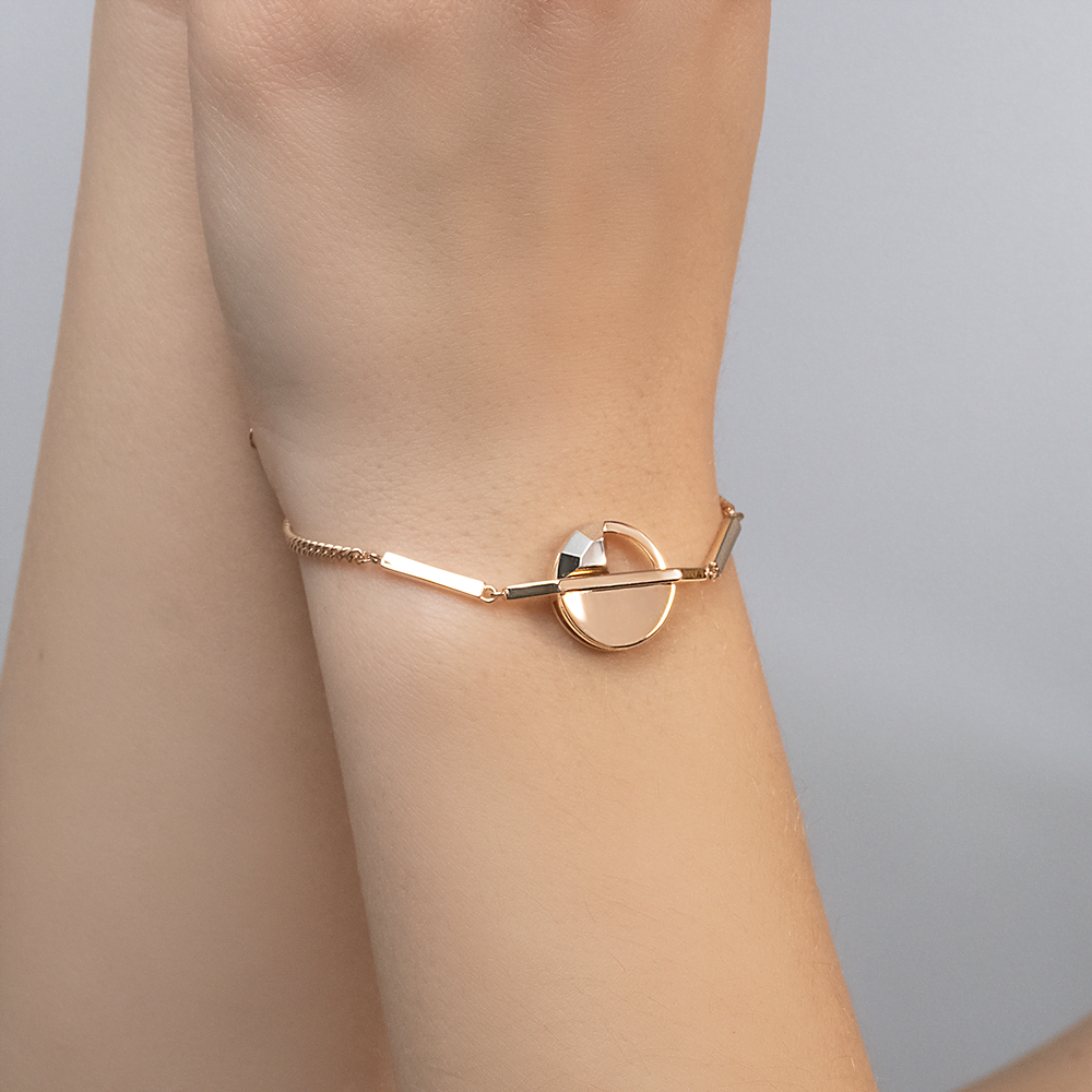 Лаконичный браслет на цепочке из красного и белого золота 585 пробы из коллекции PLATINA VIEW от ювелирного бренда PLATINA. Дизайн украшения в стиле геометрия. Многогранник с алмазными гранями имитирует оригинальную огранку камней. Глянцевый блеск золота усиливает сияние украшения. Браслет подойдёт для неформальных мероприятий и встреч, а также к деловому и повседневному гардеробу.