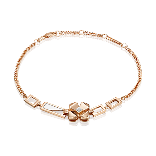 Броский и стильный браслет из красного и белого золота 585 пробы с бриллиантами из коллекции PLATINA BRILLIANCE от ювелирного бренда PLATINA. Дизайн украшения в стиле современная классика, геометрия и флористика. В центре декоративной композиции фантазийный золотой цветок с объёмными лепестками. В сердцевине цветок инкрустирован натуральными бриллиантами классической огранки. Закрепка камней выполнена вручную. Браслет подойдёт для коктейльных и вечерних мероприятий, а также к деловому и повседневному гардеробу.