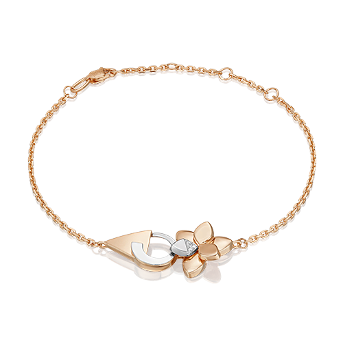 Интересный браслет на цепочке из красного и белого золота 585 пробы с бриллиантами из коллекции PLATINA BRILLIANCE от ювелирного бренда PLATINA. Длина цепочки регулируется. Дизайн украшения в стиле современная классика, геометрия и флористика. Один лепесток абстрактного золотого цветка инкрустирован натуральными бриллиантами классической огранки. Закрепка камней выполнена вручную. Браслет подойдёт для коктейльных и вечерних мероприятий, а также к деловому и повседневному гардеробу.