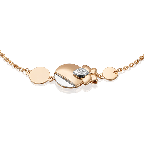 Элегантный браслет на цепочке из красного и белого золота 585 пробы с бриллиантами из коллекции PLATINA BRILLIANCE от ювелирного бренда PLATINA. Дизайн украшения сложный, в стиле современная классика, геометрия и флористика. Браслет инкрустирован натуральными бриллиантами классической огранки, закрепка которых выполнена вручную. Глянцевый блеск золота усиливает сияние камней. Браслет подойдёт для коктейльных и праздничных мероприятий, а также к деловому и повседневному гардеробу.