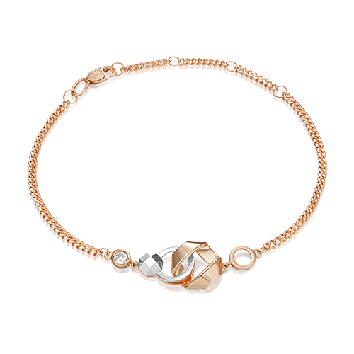 Оригинальный браслет на цепочке из красного и белого золота 585 пробы с white-топазом из коллекции PLATINA VIEW от ювелирного бренда PLATINA. Дизайн украшения в стиле геометрия. Многогранник с алмазными гранями имитирует круглую огранку камней. Браслет инкрустирован натуральным white-топазом, закрепка которого выполнена вручную. Украшение подойдёт для коктейльных мероприятий, а также к деловому и повседневному гардеробу.