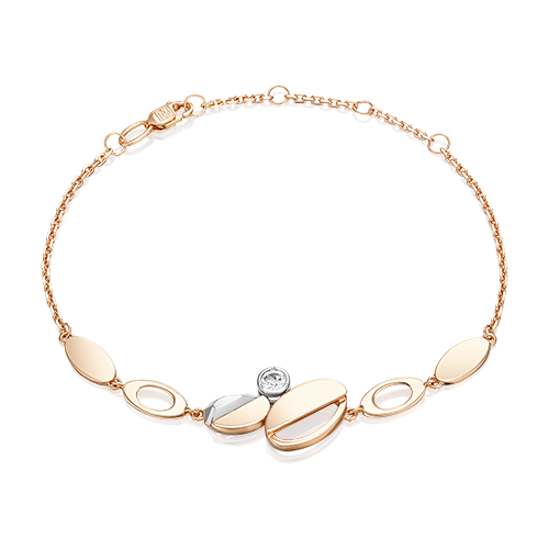 Изысканный браслет из красного и белого золота 585 пробы с white-топазом из коллекции PLATINA VIEW от ювелирного бренда PLATINA. Дизайн украшения в стиле геометрия, с элементами асимметрии. Браслет инкрустирован натуральным white-топазом, закрепка которого выполнена вручную. Украшение подойдёт для коктейльных мероприятий, а также к деловому и повседневному гардеробу.