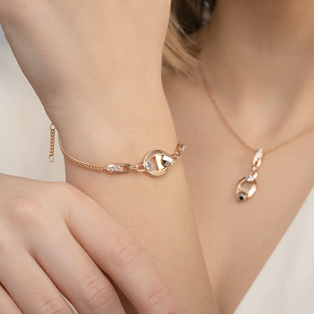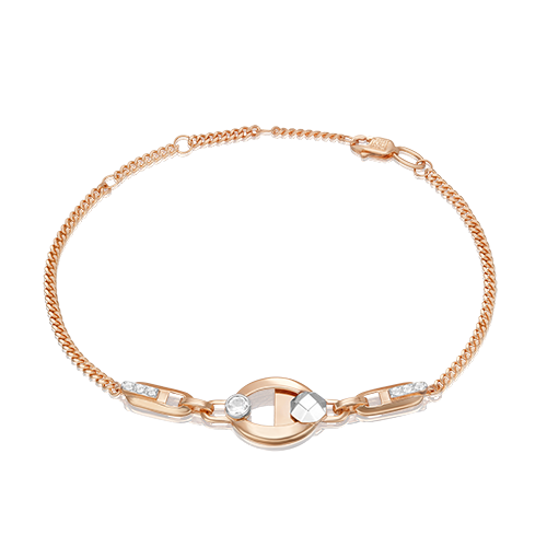 Эффектный браслет на цепочке из красного и белого золота 585 пробы с white-топазами из коллекции PLATINA VIEW от ювелирного бренда PLATINA. Длина цепочки регулируется. Дизайн украшения сложный, в стиле геометрия. Браслет инкрустирован натуральными white-топазами, закрепка которых выполнена вручную. Украшение подойдёт для коктейльных мероприятий, а также к деловому и повседневному гардеробу.