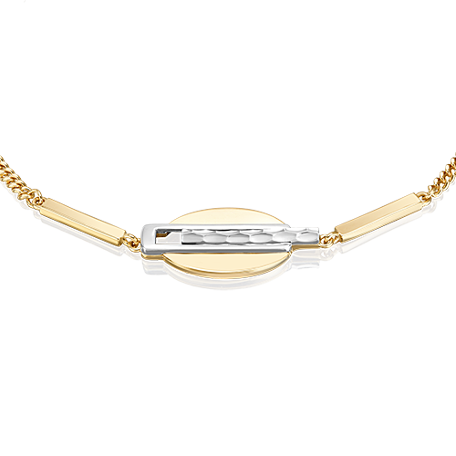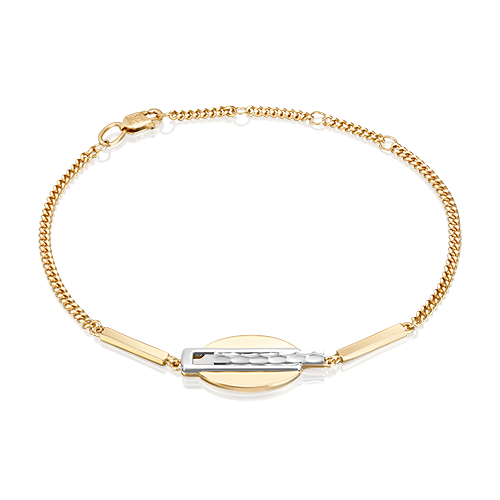 Браслет на цепочке из лимонного (желтого) и белого золота 585 пробы из коллекции PLATINA VIEW от ювелирного бренда PLATINA. Длина цепочки регулируется. Дизайн украшения в стиле геометрия. Глянцевый блеск золота усиливает сияние украшения. Браслет подойдёт для повседневного и делового гардероба, а также для неформальных мероприятий и встреч.