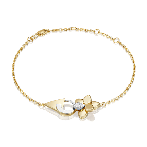 Интересный браслет на цепочке из лимонного (желтого) и белого золота 585 пробы с бриллиантами из коллекции PLATINA BRILLIANCE от ювелирного бренда PLATINA. Длина цепочки регулируется. Дизайн украшения в стиле современная классика, геометрия и флористика. Один лепесток абстрактного золотого цветка инкрустирован натуральными бриллиантами классической огранки. Закрепка камней выполнена вручную. Браслет подойдёт для коктейльных и вечерних мероприятий, а также к деловому и повседневному гардеробу.
