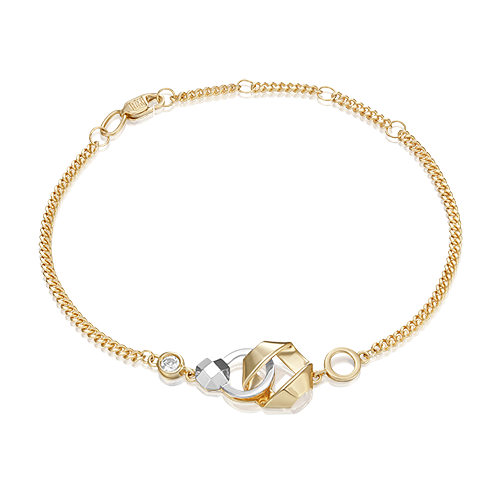 Оригинальный браслет на цепочке из лимонного (желтого) и белого золота 585 пробы с white-топазом из коллекции PLATINA VIEW от ювелирного бренда PLATINA. Дизайн украшения в стиле геометрия. Многогранник с алмазными гранями имитирует круглую огранку камней. Браслет инкрустирован натуральным white-топазом, закрепка которого выполнена вручную. Украшение подойдёт для коктейльных мероприятий, а также к деловому и повседневному гардеробу.