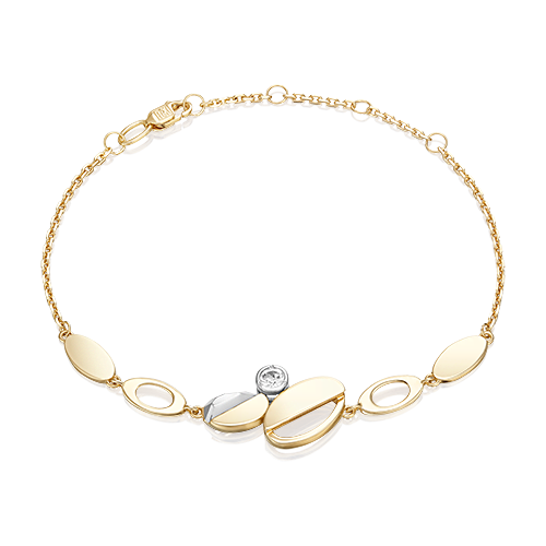 Изысканный браслет из лимонного (желтого) и белого золота 585 пробы с white-топазом из коллекции PLATINA VIEW от ювелирного бренда PLATINA. Дизайн украшения в стиле геометрия, с элементами асимметрии. Браслет инкрустирован натуральным white-топазом, закрепка которого выполнена вручную. Украшение подойдёт для коктейльных мероприятий, а также к деловому и повседневному гардеробу.
