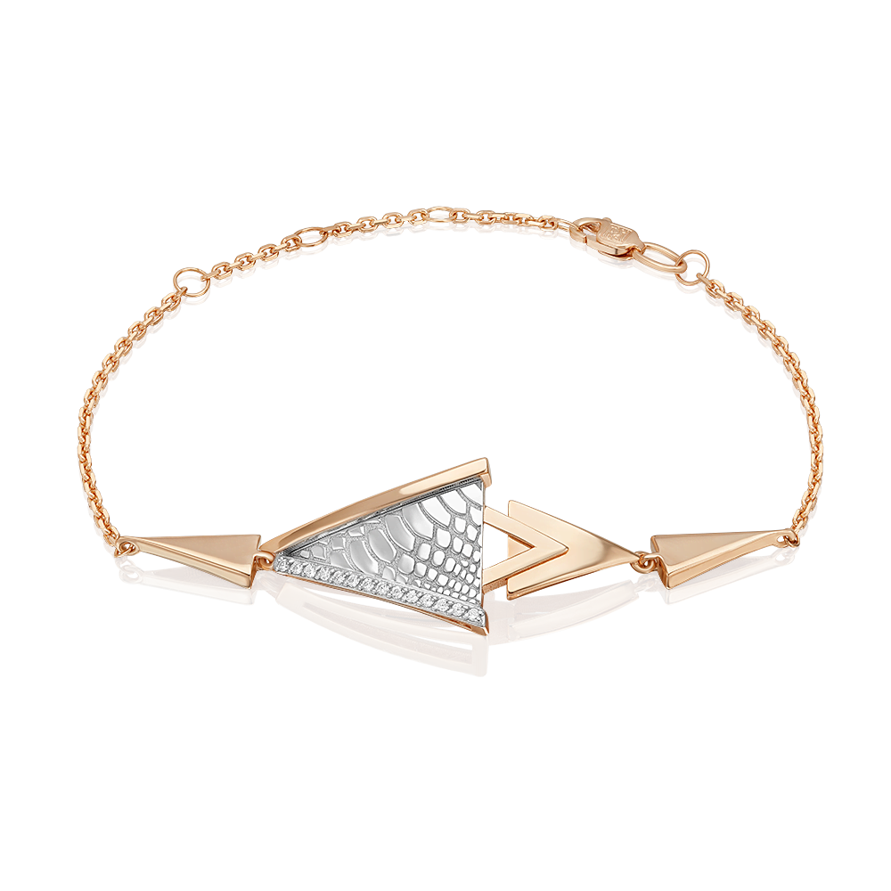 Элегантный браслет из красного и белого золота 585 пробы с фианитами и фактурным принтом Питон из коллекции FASHION by PLATINA от ювелирного бренда PLATINA. Дизайн украшения лаконичный, в стиле геометрия и минимализм. Фактурный принт нанесён с помощью лазерной гравировки. Украшение инкрустировано вручную бесцветными миниатюрными фианитами. Сияние камней эффектно перекликается с блеском белого золота. Браслет станет модным акцентом в повседневном или деловом образе, а также дополнит стильным звучанием вечерний или коктейльный наряд. Браслет (на карабине, с цепью качественного плетения) — популярное и актуальное украшение (jewelry). Все украшения от бренда PLATINA (Ювелирный завод ПЛАТИНА) приходят в красивой фирменной подарочной упаковке, а значит, идеально подходят для стильного подарка любимой женщине, девушке, жене, маме, мачехе, сестре, бабушке, тете, дочери, племяннице, родственнице, снохе, невестке, свекрови, теще, подруге, учителю, коллеге по работе. Если вы хоть раз задавались вопросом: Что особенного подарить любимому человеку? Украшение из драгоценных металлов станет прекрасной и оригинальной идеей! А выбирая ювелирные изделия от PLATINA, Вы можете быть уверены, что каждое из них станет идеальным, памятным и по-настоящему запоминающимся подарком на День рождения, годовщину свадьбы, Новый год, Рождество, именины, 8 марта, день всех влюбленных (14 февраля), день матери, выпускной, юбилей, на рождение ребенка, на профессиональный праздник, или любой другой повод.