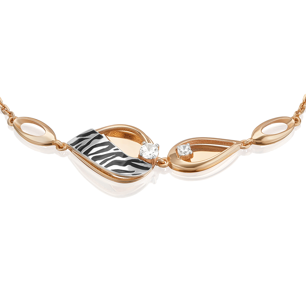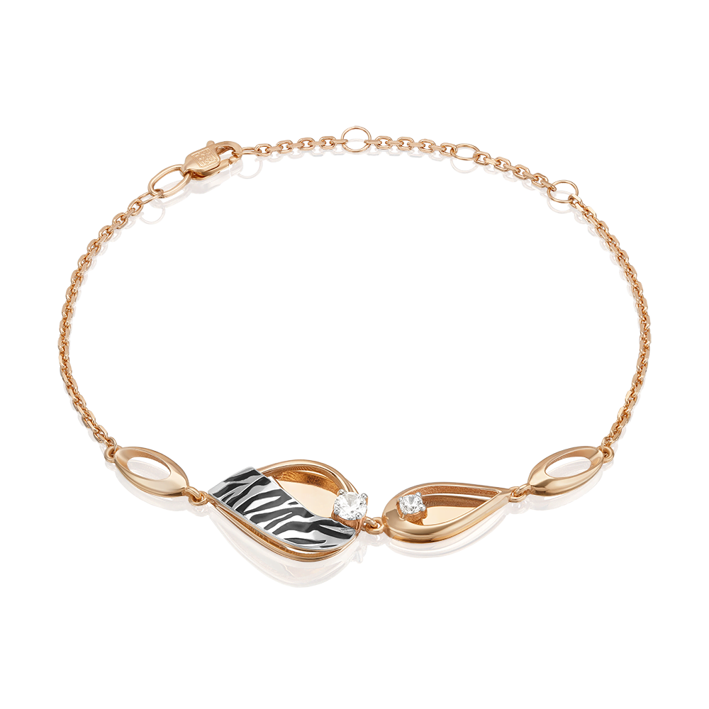 Изящный браслет из красного и белого золота 585 пробы с фианитами и ярким принтом Зебра из коллекции FASHION by PLATINA от ювелирного бренда PLATINA. Дизайн украшения в стиле геометрия и минимализм. Принт нанесён с помощью лазерной гравировки и дополнен чёрной краской эмали. Украшение инкрустировано бесцветными фианитами. Закрепка камней и эмалирование выполнены вручную. Браслет станет модным акцентом в повседневном или деловом образе, а также дополнит стильным звучанием вечерний или коктейльный наряд. Браслет (на карабине, с цепью качественного плетения) — популярное и актуальное украшение (jewelry). Все украшения от бренда PLATINA (Ювелирный завод ПЛАТИНА) приходят в красивой фирменной подарочной упаковке, а значит, идеально подходят для стильного подарка любимой женщине, девушке, жене, маме, мачехе, сестре, бабушке, тете, дочери, племяннице, родственнице, снохе, невестке, свекрови, теще, подруге, учителю, коллеге по работе. Если вы хоть раз задавались вопросом: Что особенного подарить любимому человеку? Украшение из драгоценных металлов станет прекрасной и оригинальной идеей! А выбирая ювелирные изделия от PLATINA, Вы можете быть уверены, что каждое из них станет идеальным, памятным и по-настоящему запоминающимся подарком на День рождения, годовщину свадьбы, Новый год, Рождество, именины, 8 марта, день всех влюбленных (14 февраля), день матери, выпускной, юбилей, на рождение ребенка, на профессиональный праздник, или любой другой повод.