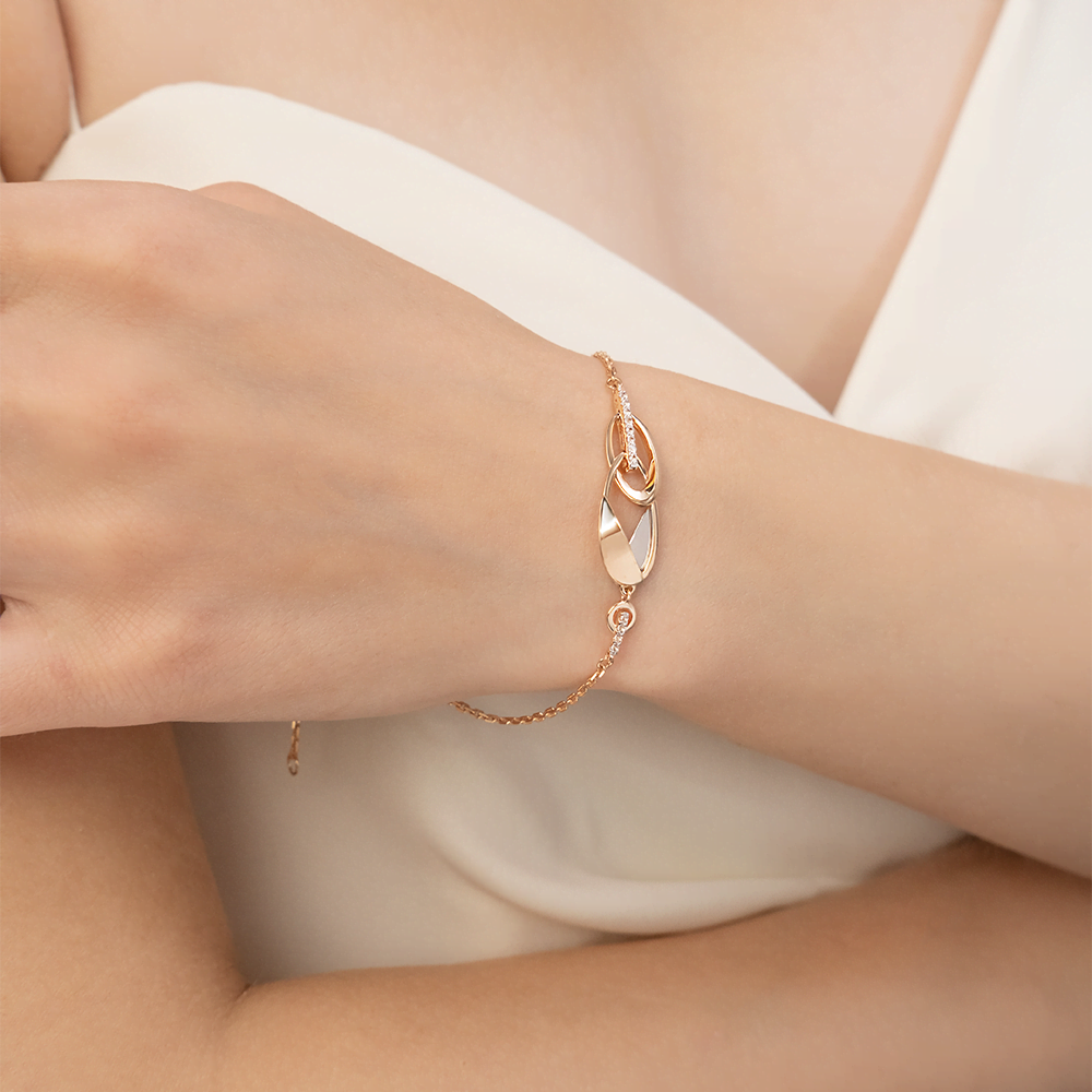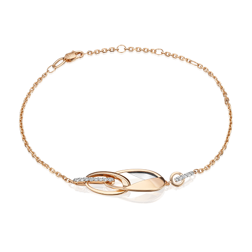 Браслет из красного и белого золота 585 пробы на цепочке с white-топазами из коллекции PLATINA LINE от ювелирного бренда PLATINA. Длина цепочки регулируется. Дизайн украшения в стиле геометрия и минимализм. Декоративные элементы овальной формы переплетаются в силуэт цепи с крупными звеньями. Изделие инкрустировано натуральными white-топазами, закрепка которых выполнена вручную. Браслет универсален: подойдёт к повседневному и деловому гардеробу, а также для коктейльных и праздничных мероприятий.