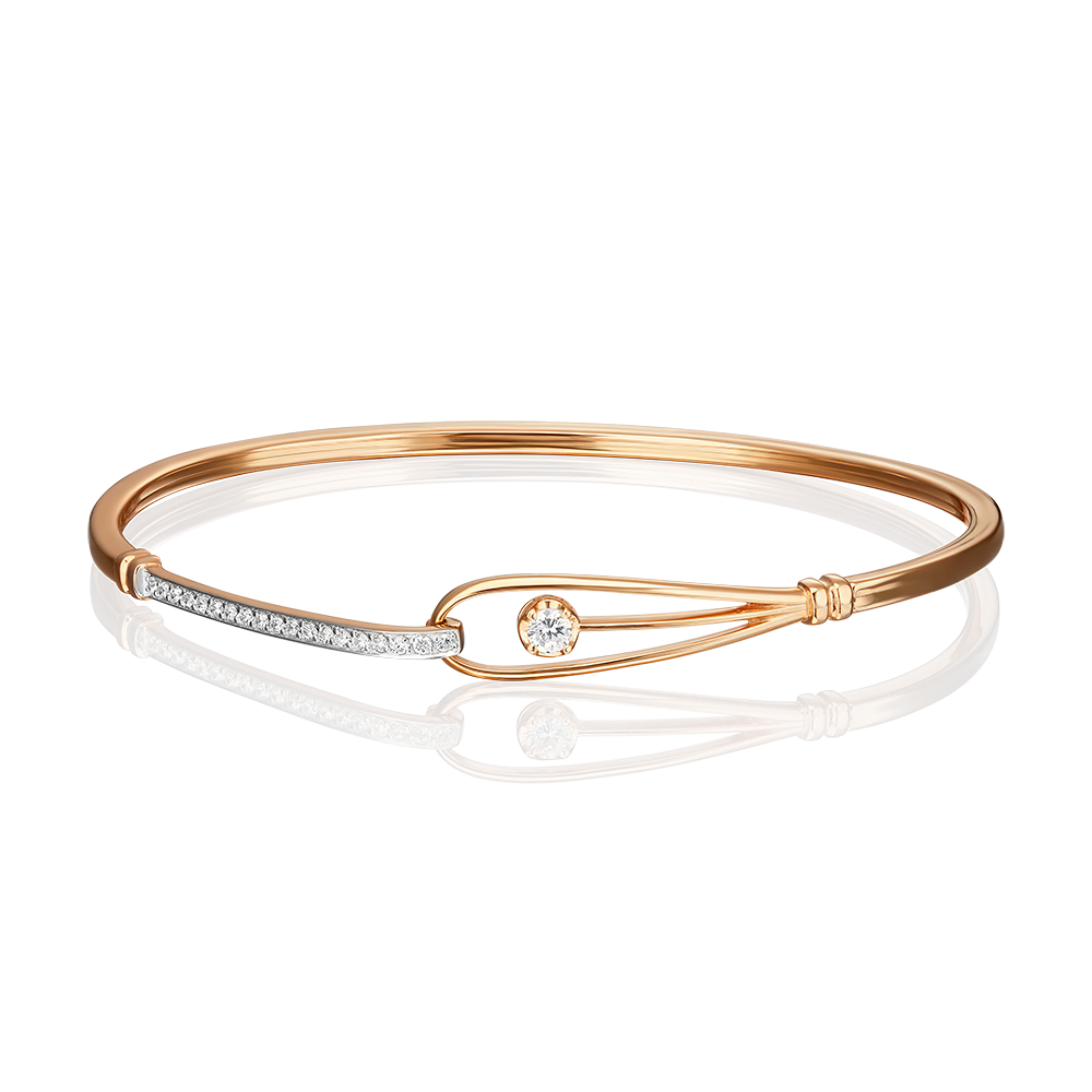 Браслет жесткий из красного золота с фианитами