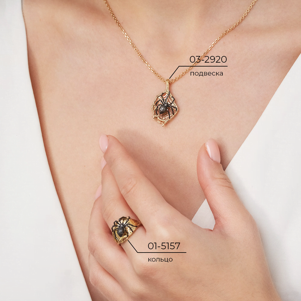 Эффектное кольцо из красного золота 585 пробы. Дизайн украшения в стиле анималистика, с силуэтом паука, плетущего паутину - символом удачи и богатства. Детализация и покрытие чёрным родием тела паука усиливают реалистичность ювелирного образа. Родирование выполнено вручную. Добавляет выразительность украшению орнамент в виде паутины. Он нанесён с помощью лазерной гравировки. Кольцо подойдёт к повседневному или неформальному стилю.