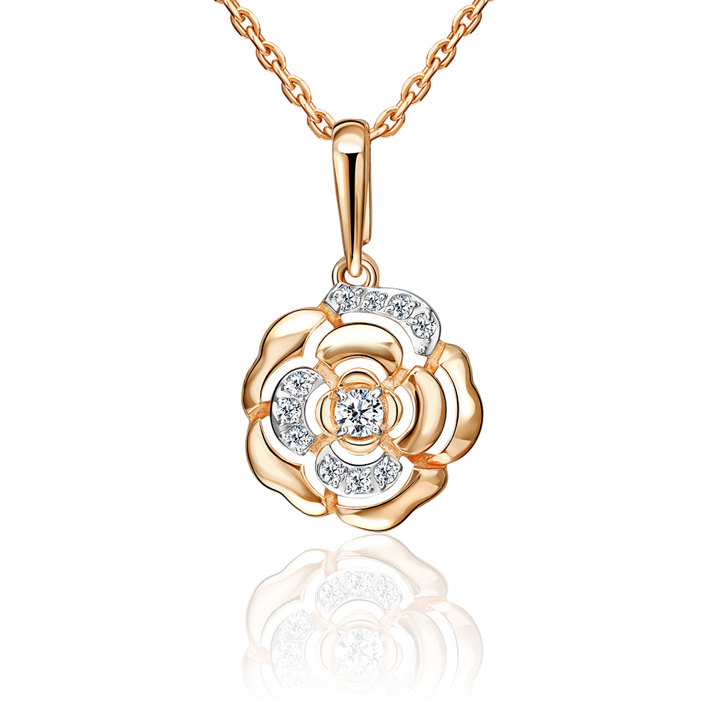 Подвеска «Камелия» из красного золота с фианитами