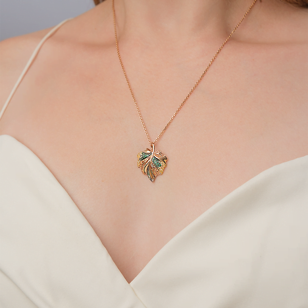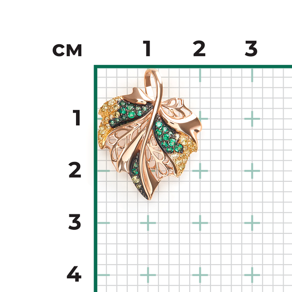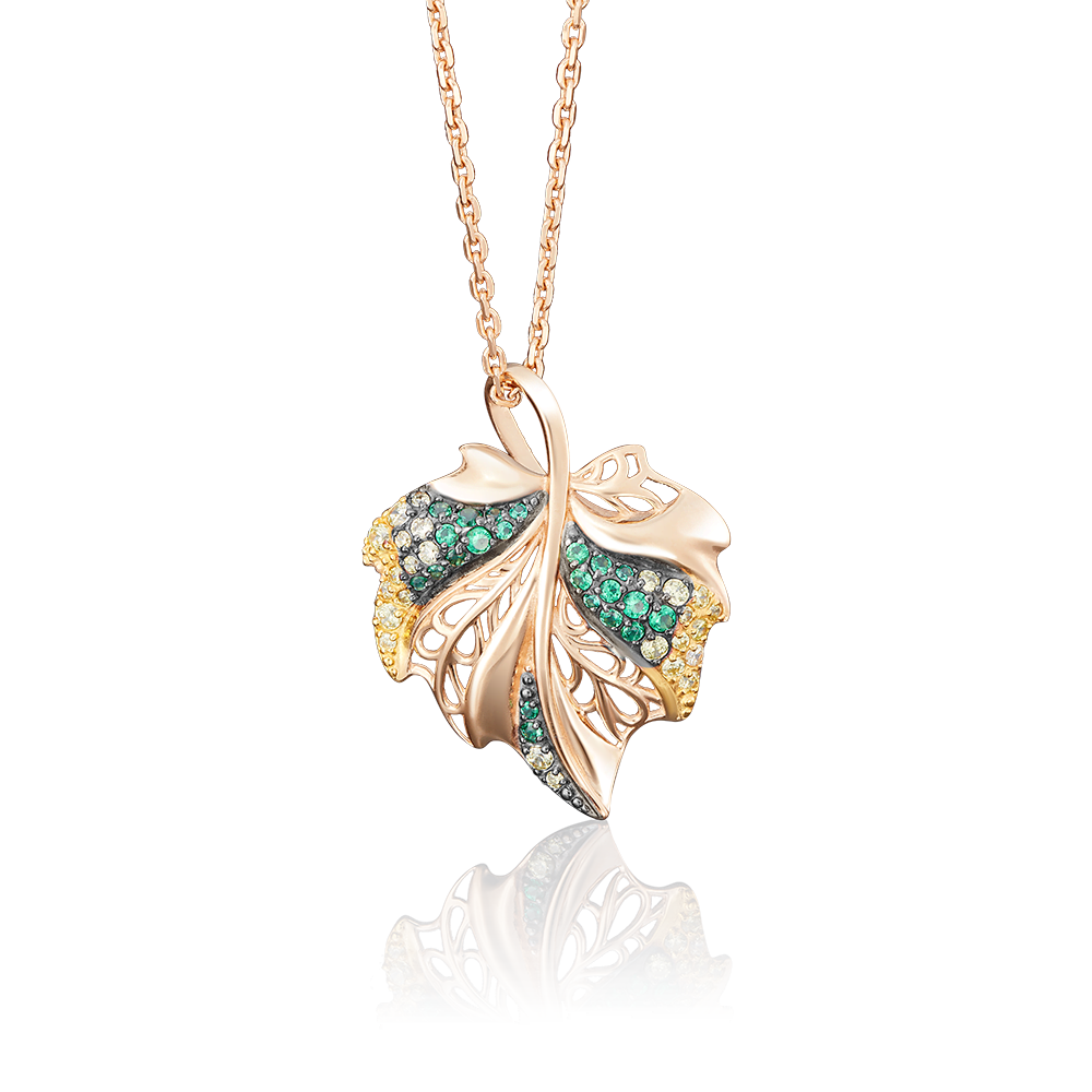 Подвеска «Лист» из красного золота с фианитами