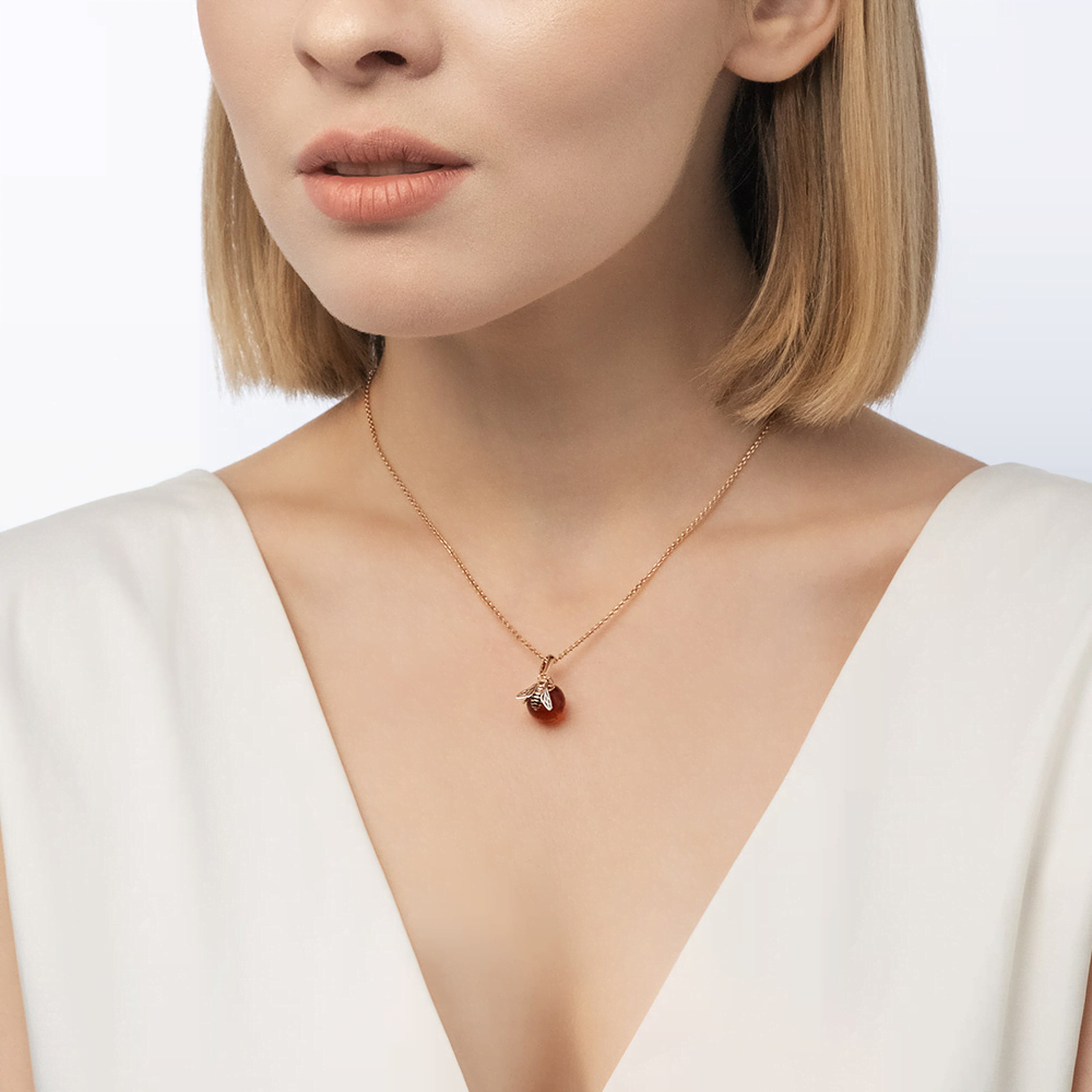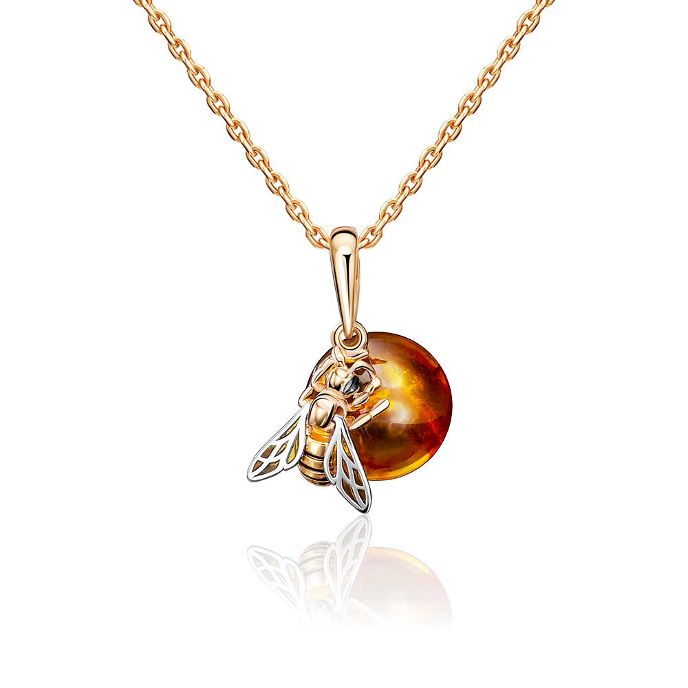 Перевернуть устоявшиеся каноны и сломать шаблоны — одна из главных задач любого искусства. В этом украшении вместо застывшего в вечном янтарном плену насекомого мы видим неожиданную картину: пчела смело ползет по янтарю. Подвеска воплощает идеальную гармонию контрастов, в которых соединяются отголоски прошлого и новаторство современности. Ювелиры «Платина» смогли создать удивительное украшение, покоряющее своим нестандартным творческим видением и фантазией. Живой эффект от подвески усиливается при движении — полупрозрачные крылья пчелы при каждом шаге начинают подрагивать, отбрасывая теплые золотистые блики.