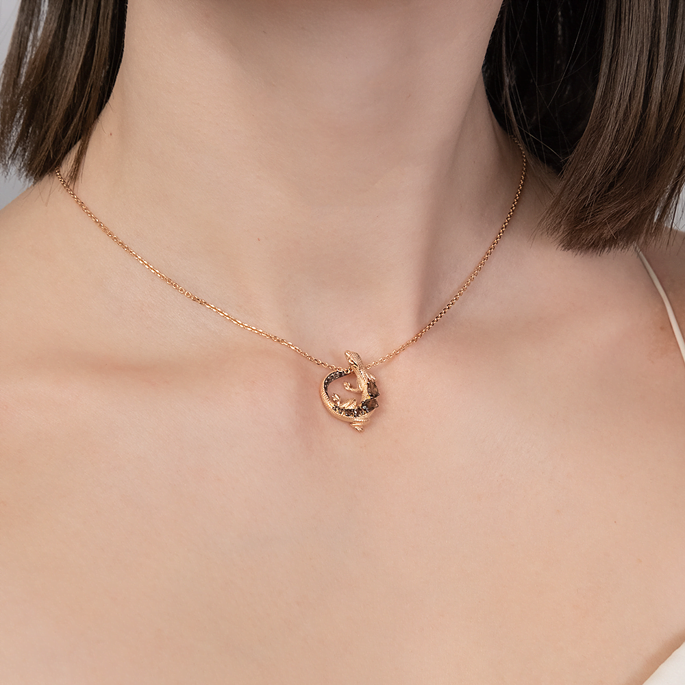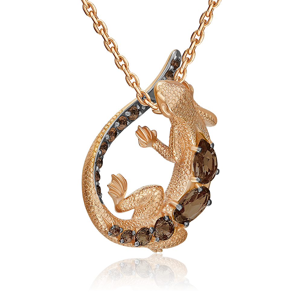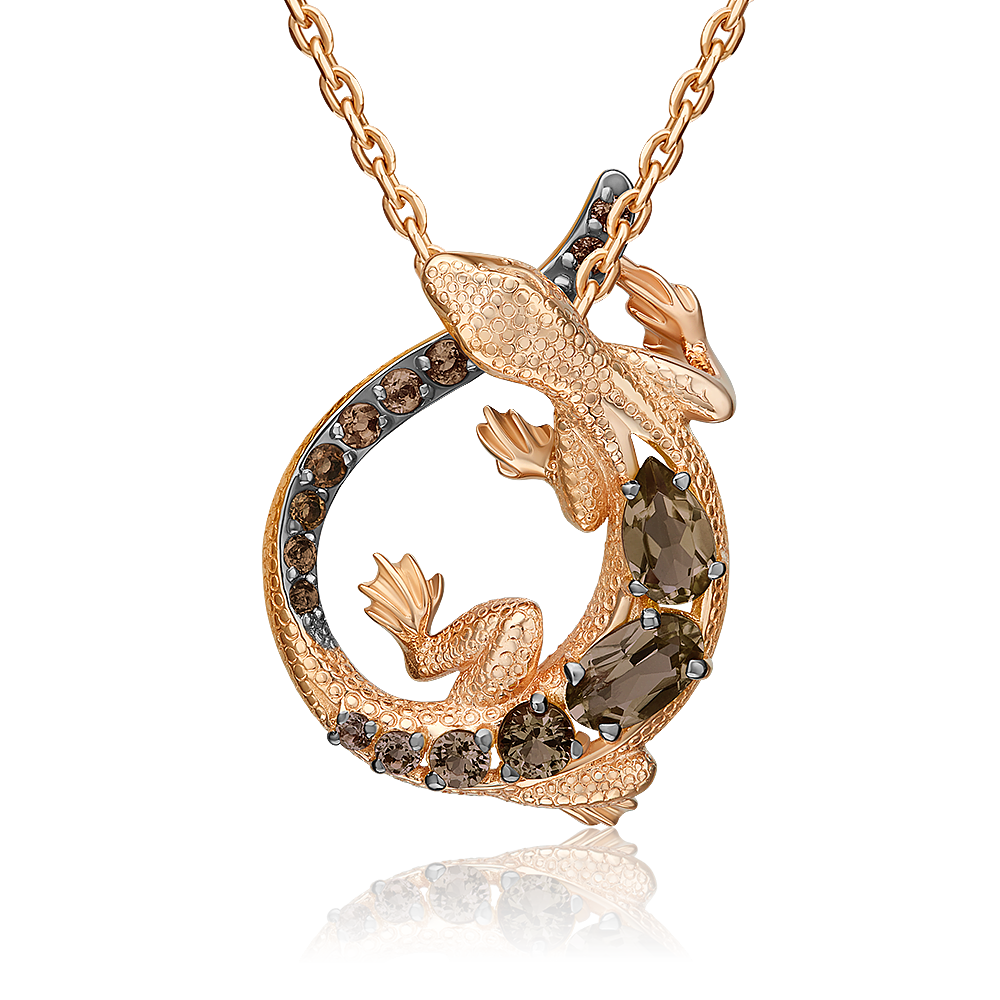 Подвеска «Ящерица» из красного золота с кварцем дымчатым