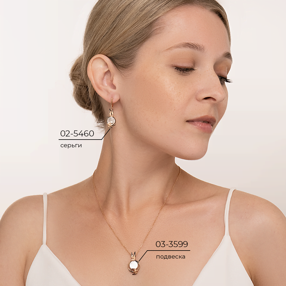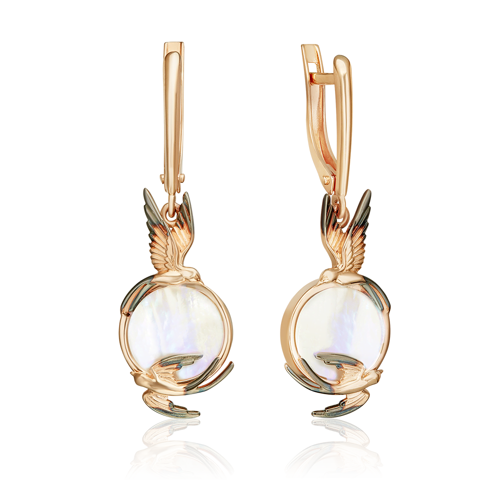 Серьги «Солнечный полдень» с английским замком из красного золота с перламутром