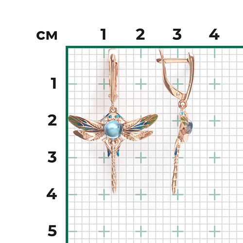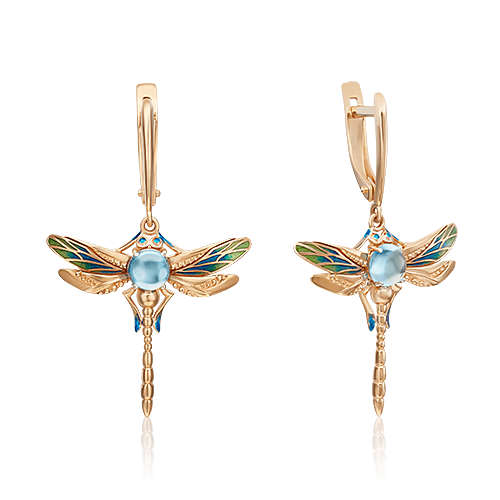 Серьги «Стрекозы» с английским замком из красного золота с топазом и эмалью