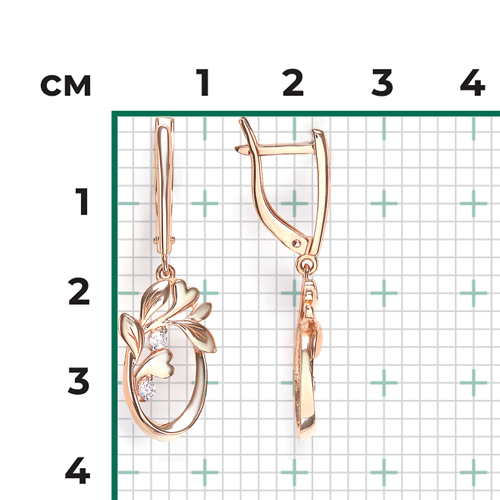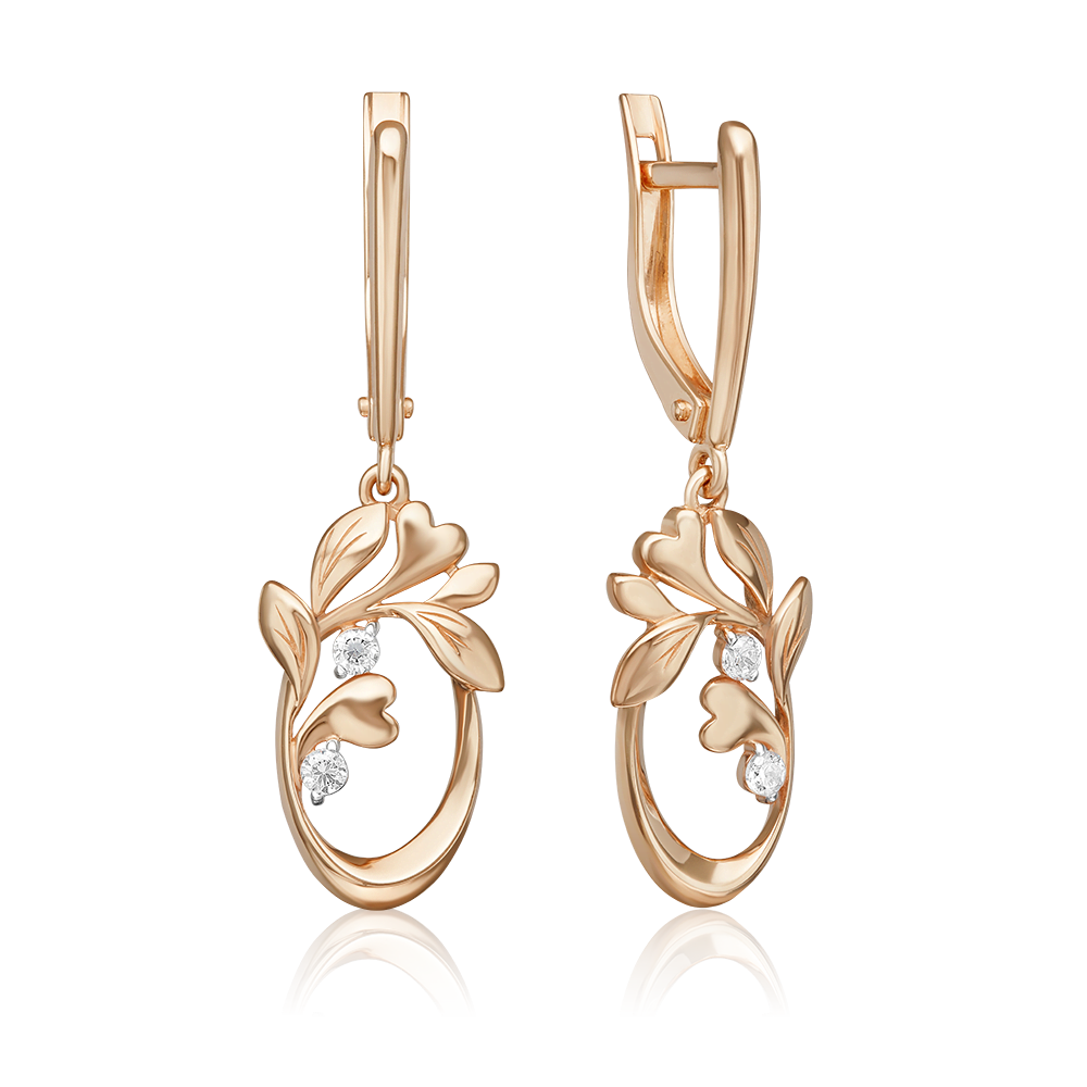 Серьги «Цветущее дерево» с английским замком из красного золота с фианитами